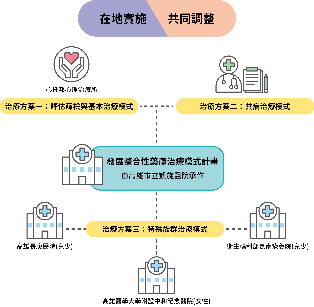 結合及輔導在地藥癮醫療處遇資源,發展多元醫療服務方案。